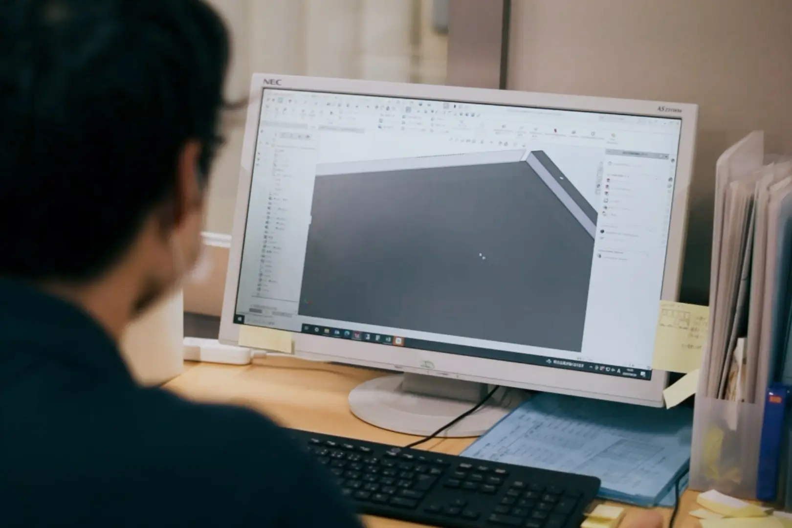 木本さんに担当してもらっている仕事は 「NCプログラムの作成」という、製造現場で使用している機械を動かすための データづくりです。