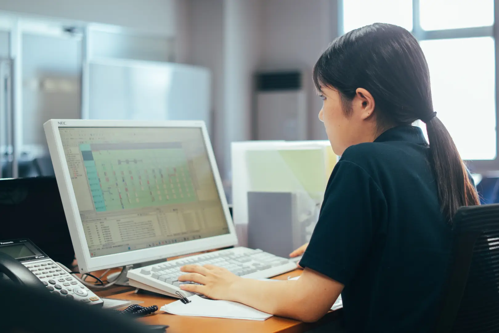頂いた注文を生産管理システムに登録して生産計画を立てたり、お客様と連絡を取るのが主な仕事です。納品書、請求書の作成や出荷トラックの手配なども行います。